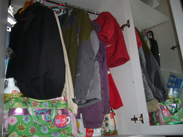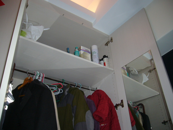 底下你可以看到衣帽櫃理混亂的情況!這裡放的就是一般出門用的外套與帽子、雨傘(雨傘要特別交代木工師傅長度,不然會殘念....)等等