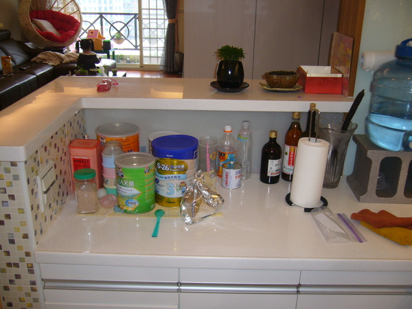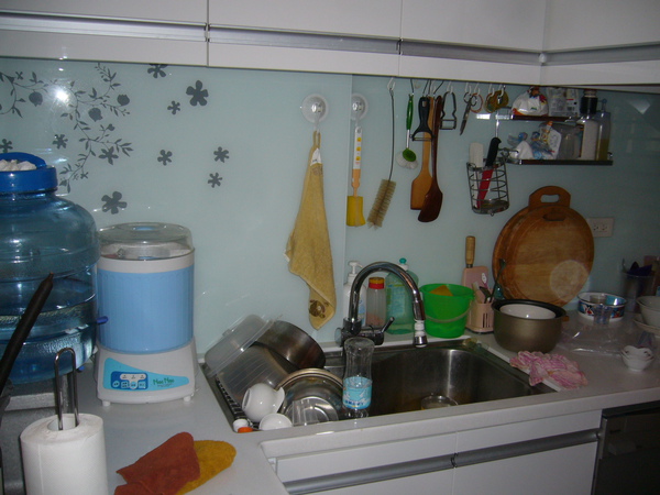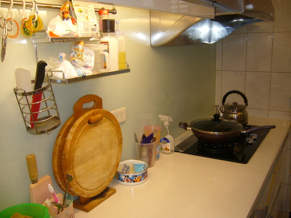 那些吊架很實用,建議大家可以考慮!對了對了,記得要在吊櫃下方裝光源哦!不然切菜時老是覺得暗暗的~~