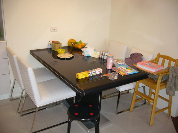 花很多時間去挑的餐桌與餐椅,結果用起來就是「桌子」與「椅子」嘛!選什麼都一樣啦!別花太多經費在這上頭吧!餐桌旁的插座是設計師的貼心設計,他說要給我們吃火鍋用的,可以接電磁爐或火鍋爐等等不過一樣,我們一次都沒用過!