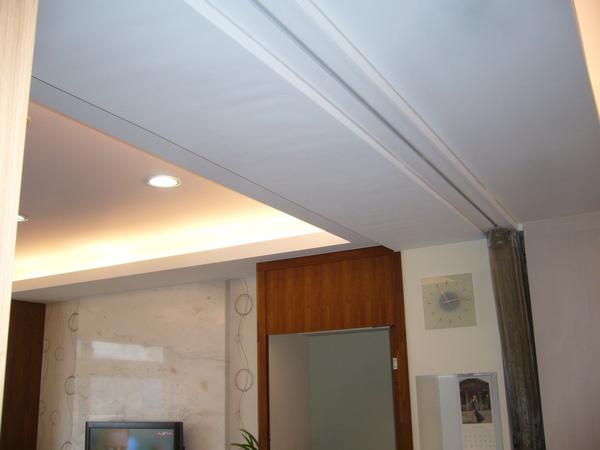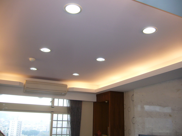 還好,暗渡陳倉成功,因為神奇的是,這種淡紫色天花板搭配淡黃色的隱藏式光源,真是絕配!漂亮斃了~家裡的光線不會太黃也不會太慘白~真是他碼的讚!
