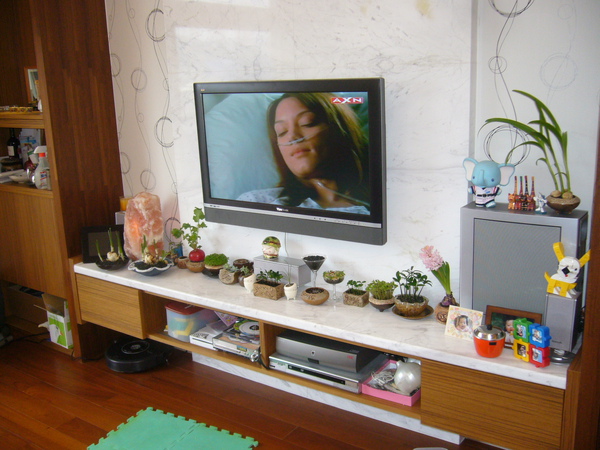 因為已經有一些電器設備例如 TIVO 跟DVD播放器 所以要量好格子的高度,但是也會擔心這個電視下的小矮櫃如果做的太厚就不時尚了