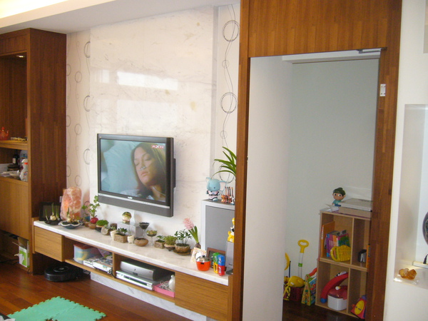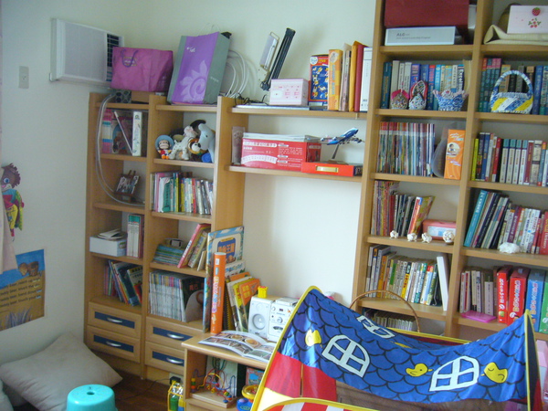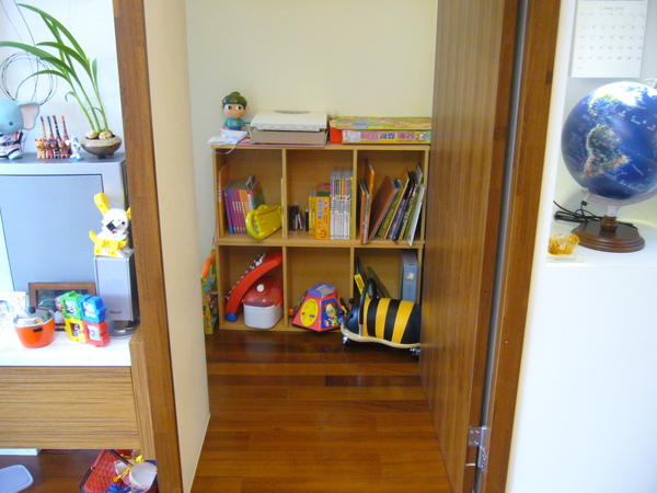 裡面又是一間房間,目前當作小孩子的遊戲室,靠牆的那面系統書架是前屋主的電視牆,我們請設計師把他移過來用,以免浪費!還蠻耐用的!是大牌子-歐德的!