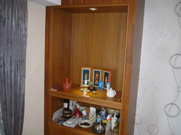 佛桌桌面底下大家有沒有看到比較厚,初一十五可以拉出來,放水果盤拜拜,其他收納空間現在都是蝴蝶爸再用的