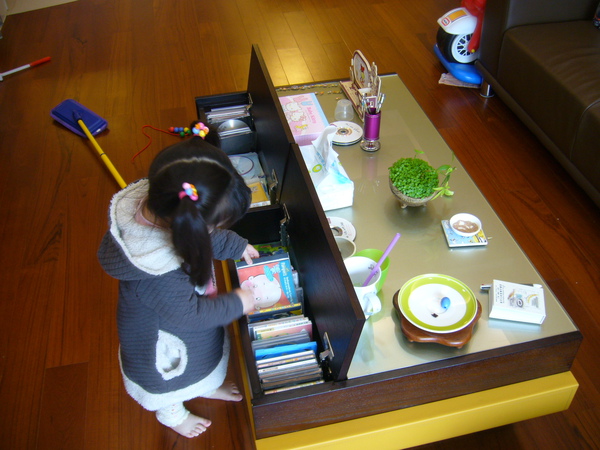 側邊靠近沙發處,設計師還貼心的設計出一個可放雜誌的隱藏空間,果然夠隱藏,因為我常常忘記去使用它!
