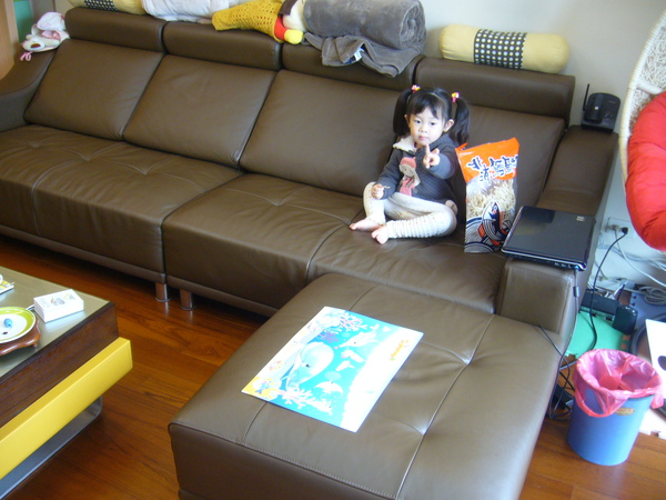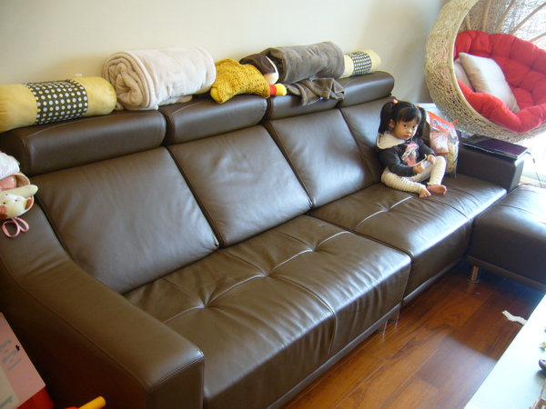 沙發的選購重點是,一定要買皮沙發,因為小孩子鐵定會翻倒液體在沙發上,在上面搞得髒髒黏黏的,皮沙發對這些污垢具有較強的抵抗力,所以強烈建議哦!而且盡量選深色系的,這樣被小孩子在上面畫畫比較難不出來!(嗚~我們已經被小蝴蝶劃兩次了),至於你去家具行會看到各式各樣的沙發,功能奇特又炫麗的,請千萬三思!因為你會發現,那種向變形金剛的沙發,你買回來後大概都不會再變化它了,你會選到一種你最舒服的方式來坐,然後坐到他壞掉為止!但是那些可變化的關節與五金卻會縮短沙發的耐用壽命哦!不信你問網友看看!但是沒良心的家具行都會說,我們的五金部分是終身保固的!沒錯啦!終身保固,但是你要承擔兩個風險,一是家具行沒倒,二是自行負擔運送的費用,我想光第二項你就會打消修理的念頭,乾脆換個新的!