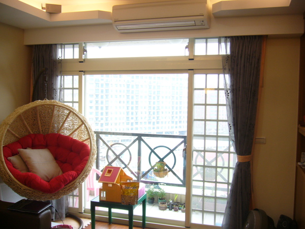 另外這片落地窗是我特別重做的,正新隔音氣密窗,真的很隔音哦!中間預留大面積的觀景區域,確保這片美麗的風景不至於浪廢掉!左右兩邊的紗窗有加裝兒童安全鎖,以防止小孩子自己打開,由陽台掉出去!但是....小蝴蝶太聰明了,一看大人怎麼開,馬上就學起來了,所以目前此功能---fail.