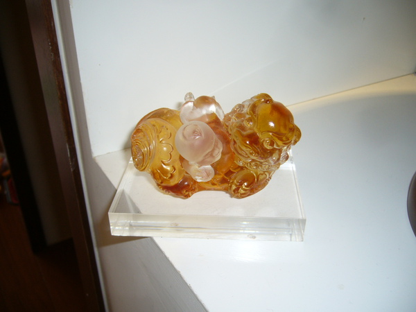 這尊琉璃,是蝴蝶媽的同事送的,它是一隻喜獅背著兩個小寶寶,象徵喜獅連連(喜事連連)!真是吉祥啊!