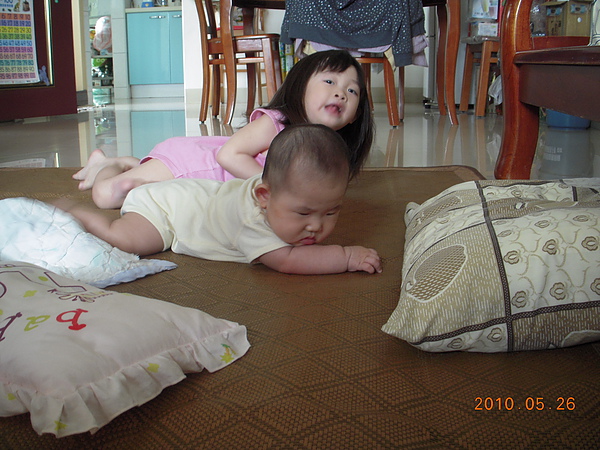 他們現在午睡都在保母家客廳鋪草席開冷氣睡覺