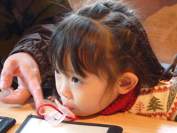 另一段飛行航程也有個插曲,小蝴蝶一直看著蝴蝶爸準備的小筆電裡的巧虎影片,但是一樣到了要下降了時,空姐要求要收電腦與桌子,蝴蝶公主開始不爽了,這時又出現蝴蝶爸的看家本領「騙小孩」,蝴蝶爸對蝴蝶公主說,如果你不先暫停,等下空阿姨就會把你的電腦沒收,到時候你就沒電腦囉!這小妮子一聽,趕緊叫阿爸按暫停,然後把電腦收好,然後一樣「扣緊安全帶、雙手扶好扶手」準備迎接下降時的「碰碰」!!