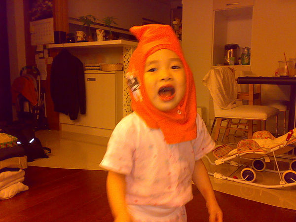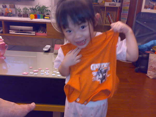 (小蝴蝶~這件衣服真的太小了啦 上面標示3個月)
