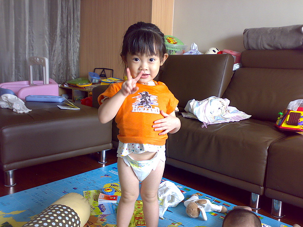 小蝴蝶最愛拿東東模特兒替他換尿布換衣服的