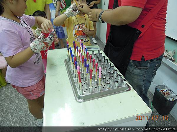 一:一秒鐘直接插到凝固劑裡 插到底 十:拿出來數十秒鐘 五:慢慢插入乳膠液 只要模具的一半 數五秒鐘 十:慢慢拿出 越慢越好 然後數十秒鐘