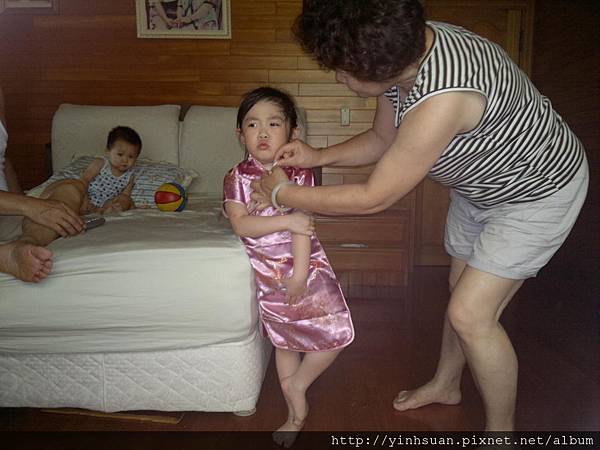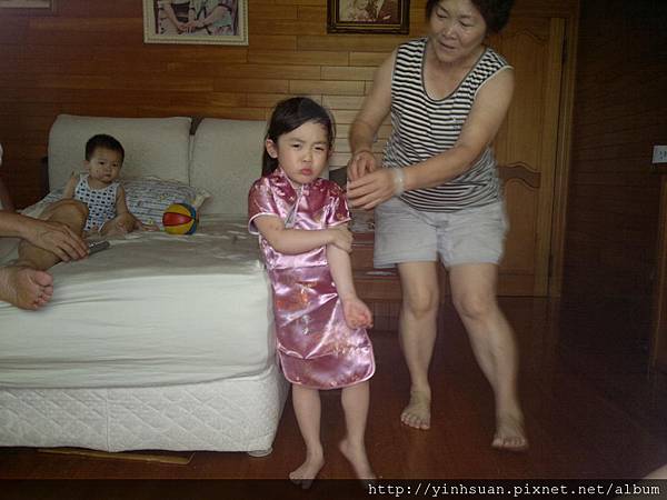 阿嬤要幫他弄扣子 也是一副"皺巴臉"(他都用這個名詞形容我生氣的樣子)