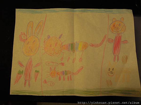 最近小蝴蝶放學回家都會帶著他在值班教室畫畫角畫東西的作品