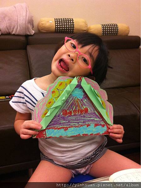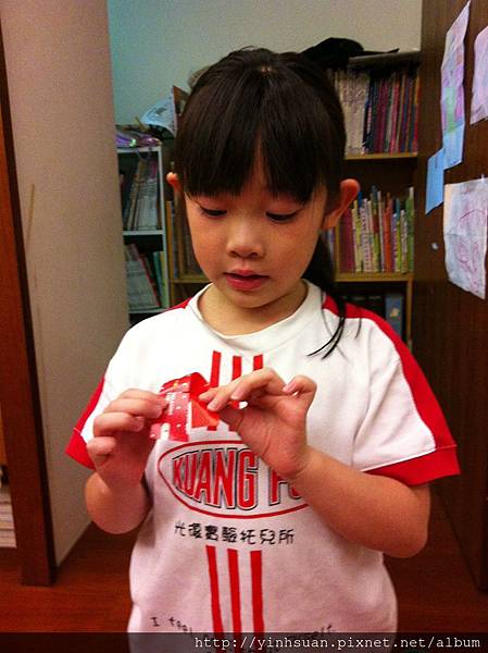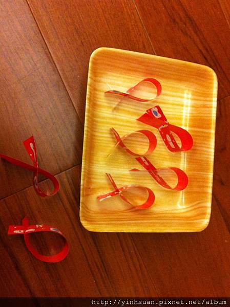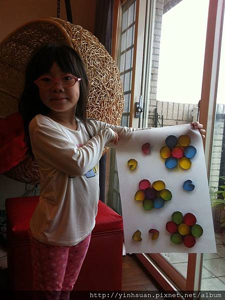 還跟我說 麻麻 我一張色紙可以做七隻小魚喔