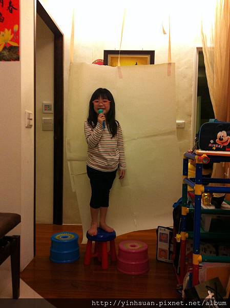接下來關燈 只留"紙幕"後面的燈光 小蝴蝶就帶領妹妹完影子遊戲