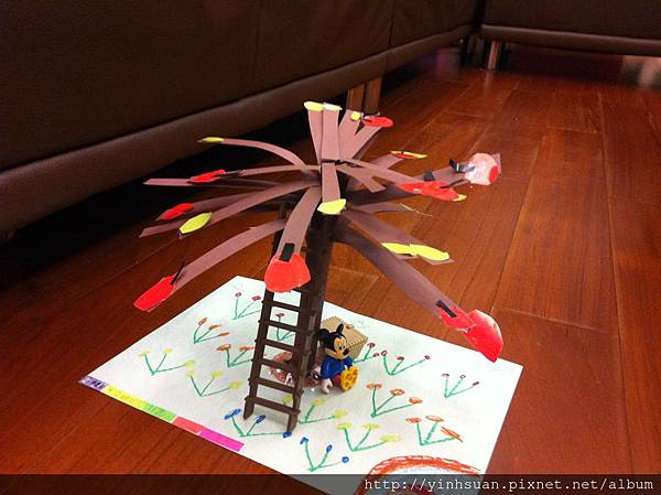 (大家有看到 照片後方 那個穿紅色背心裙的小人嗎 手上拿著雙面膠 不知道又在黏什麼東西了)