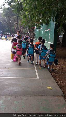第二天 是我送小蝴蝶上學 因為在開學前夕的那周日 阿爸臨時要出差到大陸到周四才會回來 我先在小蝴蝶到學校大門口放下她之後再帶老二去光復幼兒園